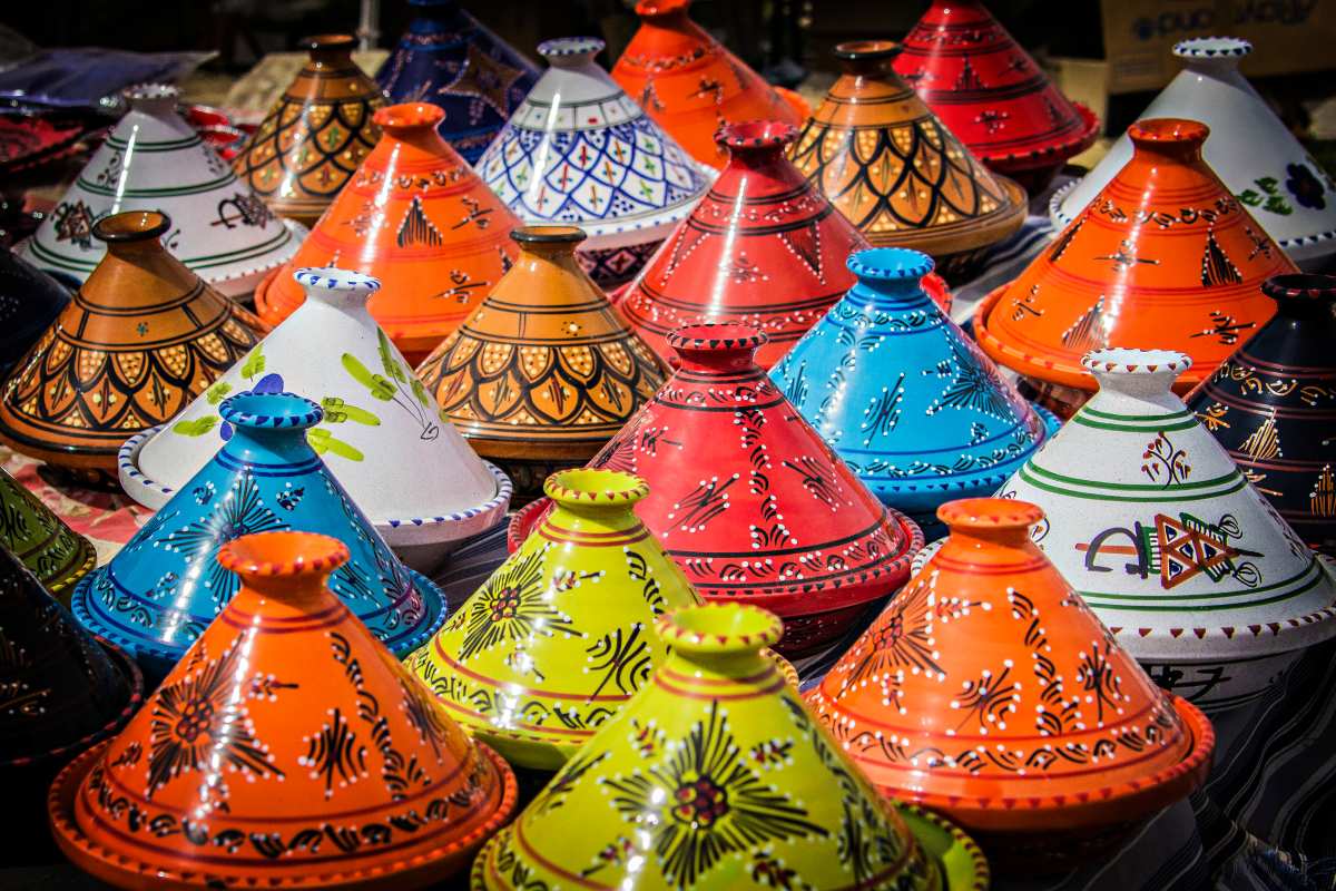A tagine is both the dish and the cone-shaped pot in which it’s cooked. In North Africa, these slow-cooked stews layer tender meat, warm spices, and a touch of sweetness from dried fruit.