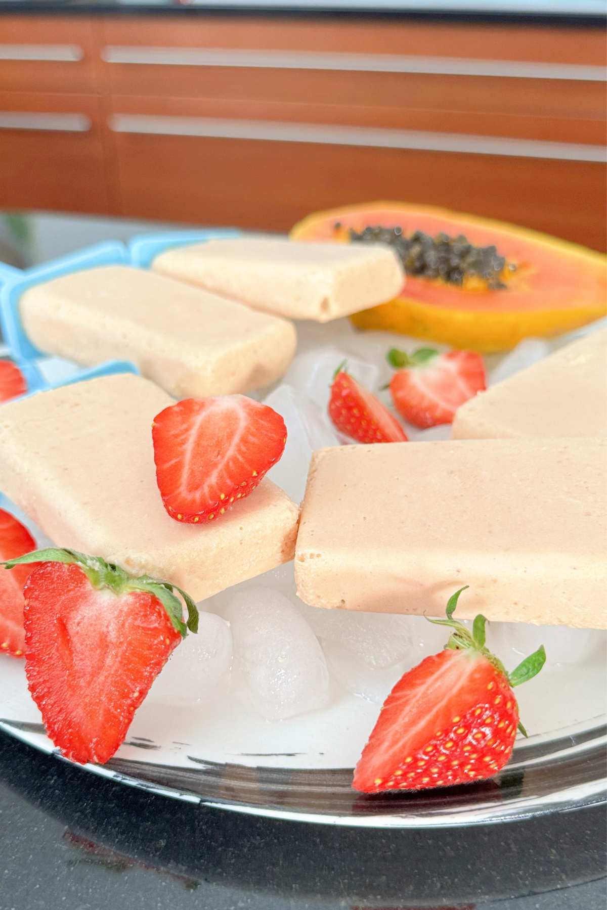 Ingredients for Creamy Papaya Strawberry Popsicles